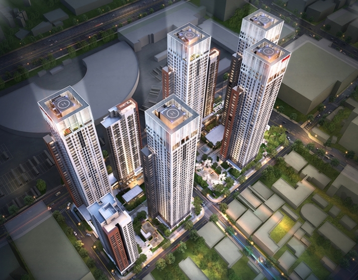 [광주=뉴시스] 송창헌 기자 = 광주 서구 화정동 현대산업개발 아이파크 신축 현장 붕괴 사고 엿새 째인 16일 현장에서는 실종자 5명을 찾기 위한 수색·구조 작업이 한창 진행중이다. 화정 아이파크 1, 2단지 조감도.(사진=현대산업개발 제공) 2022.01.16 [email protected]