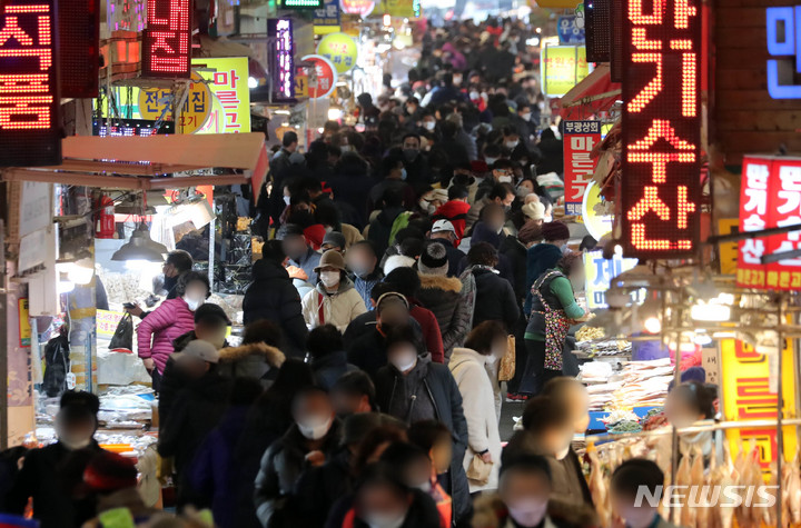 [부산=뉴시스] 하경민 기자 = 설 연휴를 2주일 가량 앞둔 16일 부산 부산진구 부전시장이 제수용품 등을 구입하러 나온 시민들로 북적이고 있다. 2022.01.16. [email protected]