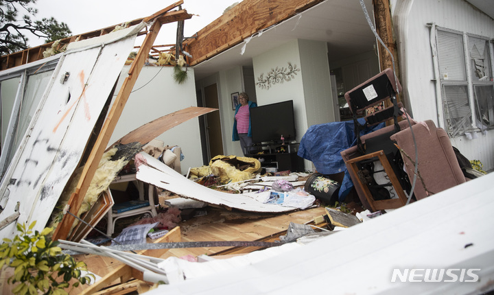 [포트마이어스(플로리다)=AP/뉴시스]16일(현지시간) 미국 플로리다주 포트마이어스의 한 가옥이 토네이도에 완전히 파괴된 모습. 이날 아침 플로리다주에는 2개의 토네이도가 발생, 가옥 수십채가 파괴되고, 7000여채에 정진 피해가 발생했다. 2022.01.17.