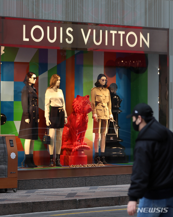 [서울=뉴시스] 이영환 기자 = 루이비통이 내년 3월까지 한국 내 시내면세점 매장을 모두 닫을것으로 알려졌다. 지난해 6월 면세전문 매체 '무디 데이빗 리포트'는 루이비통이 한국을 포함한 상당수 시내면세점 매장을 점진적으로 정리하기로 했다고 보도했다. 사진은 17일 오후 서울 시내의 루이비통 매장. 2022.01.17. [email protected]