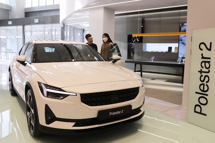[부산=뉴시스] 부산 신세계 센텀시티는 센텀시티몰 1층에 스웨덴 프리미엄 전기차 브랜드 '폴스타'(Polestar)의 전시공간인 '스페이스 부산'이 문을 열었다고 24일 밝혔다. 폴스타코리아의 세 번째 전시장인 이 곳은 294㎡ 규모의 1층 전시공간과 110㎡ 규모의 지하 3층 출고차량 인수공간로 구성된다. 2022.01.24. (사진=신세계 센텀시티 제공). [email protected]