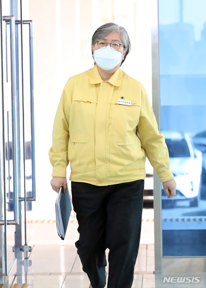 [청주=뉴시스] 강종민 기자 = 정은경 중앙방역대책본부장(질병관리청장)이 24일 오후 충북 청주 질병관리청에서 오미크론 변이 발생현황과 방역대응 등을 발표하기 위해 브리핑실로 향하고 있다. 2022.01.24. [email protected]