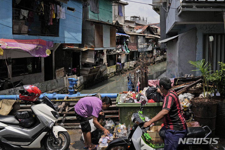 [자카르타=AP/뉴시스] 26일(현지시간) 인도네시아 자카르타의 공공 쓰레기통에 시민들이 쓰레기를 버리고 있다. 인도네시아 의회가 지난 18일 수도 이전 법안을 통과해 조코 위도도 인도네시아 대통령의 수도 이전 숙원 사업이 가결됐다. 조코위 대통령은 2019년 8월 인도네시아 수도를 자바섬 자카르타에서 보르네오섬 동칼리만탄으로 옮기겠다고 수도 이전 정책을 발표한 바 있다. 2022.01.26.