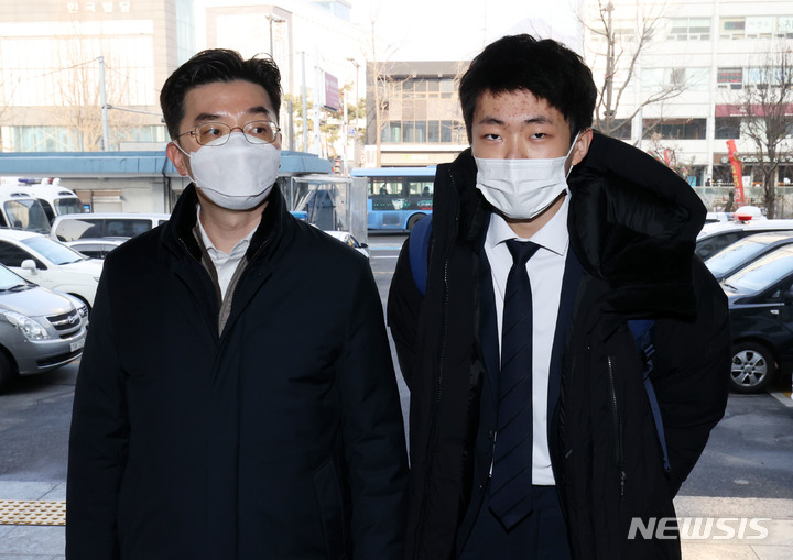 [서울=뉴시스] 고범준 기자 = 유튜버 양대림(오른쪽) 씨와 채명성 변호사가 26일 오전 서울 종로경찰서에서 고발인 조사를 받기에 앞서 취재진 질문에 답하고 있다. 양 씨는 방역패스와 관련 문재인 대통령과 김부겸 국무총리, 권덕철 보건복지부 장관 등을 직권남용권리행사방해와 미필적 고의에 의한 살인 및 살인미수 혐의로 고발했다. 2022.01.26. [email protected]