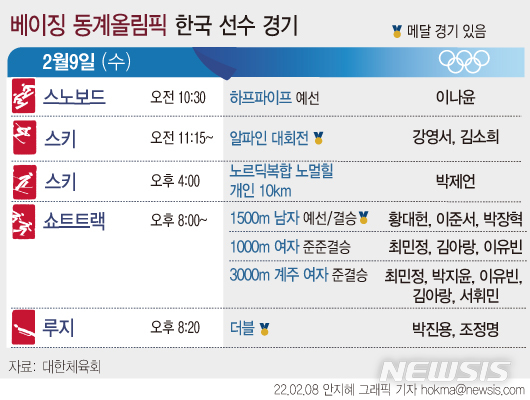 [그래픽] 베이징 동계올림픽 한국 선수 경기 (9일)