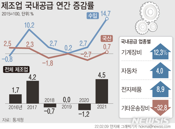 [그래픽] 제조업 공급 4년 만에 반등…수입 비중 최대