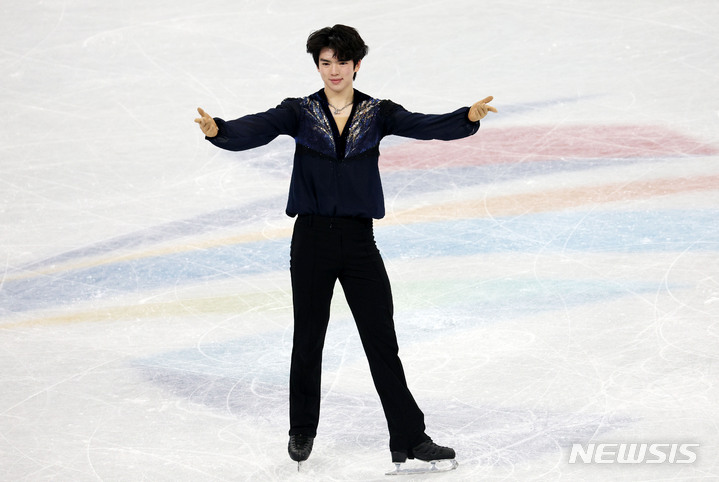 [베이징(중국)=뉴시스] 홍효식 기자 = 차준환이 10일 중국 베이징 캐피털 실내경기장에서 열린 2022 베이징 동계올림픽 피겨 스케이팅 남자 싱글 프리 스케이팅에 출전해 연기를 펼치고 있다. 2022.02.10. [email protected]