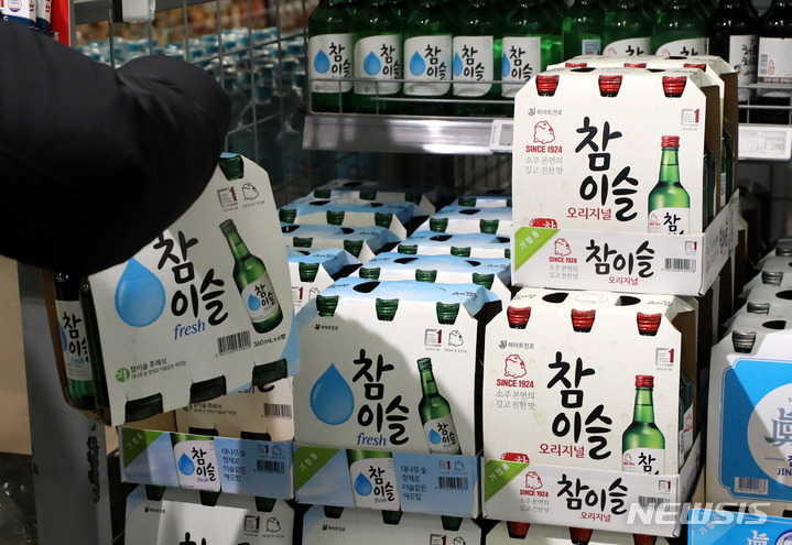 [서울=뉴시스] 추상철 기자 = 하이트진로가 오는 23일부터 참이슬과 진로 소주 출고가를 7.9% 인상한다고 밝혔다. 20일 오후 서울의 한 대형마트에서 시민이 소주를 고르고 있다. 2022.02.20. [email protected]
