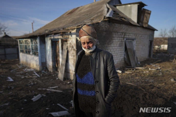 [노보냐티브카=AP/뉴시스] 20일(현지시간) 우크라이나 동부 노보냐티브카에서 우크라이나가 친 러시아 반군의 소행이라고 주장하는 포격으로 한 주민이 파손된 자신의 집 앞에서 울고 있다. 러시아가 우크라이나 동부 돈바스 지역의 상황 악화를 구실로 20일 종료 예정이던 벨라루스와의 합동 군사훈련을 연장해 우크라이나 침공에 대한 긴장이 고조되고 있다. 2022.02.21.