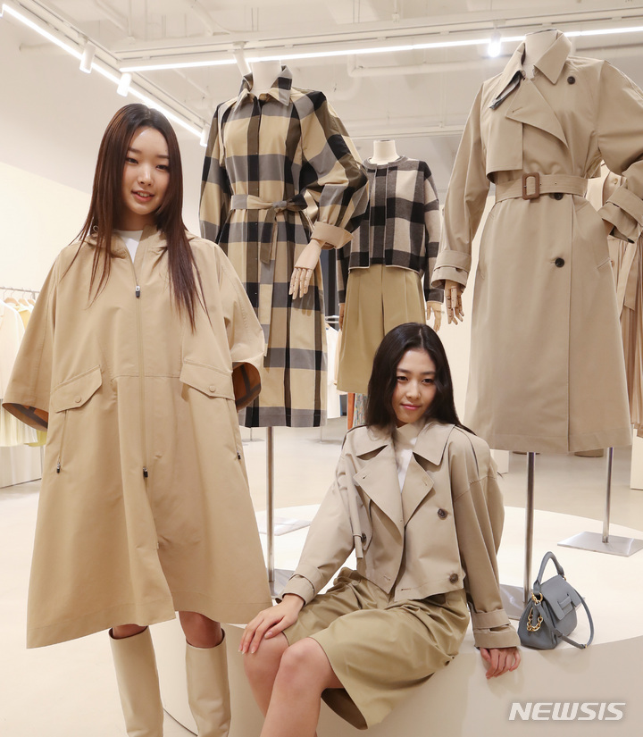 [서울=뉴시스] 조수정 기자 = LF 여성복브랜드 닥스 모델들이 2일 오전 서울 강남구 신사동 이일이구갤러리에서 크롭 디자인을 적용한 숏 트렌치코트, 풍성한 실루엣의 케이프 트렌치코트 등 닥스의 클래식함을 현대적으로 재해석한 봄·여름 컬렉션을 선보이고 있다. 이번 시즌은 버버리 출신의 뤽 구아다던 총괄 디렉터의 첫 작업으로 젊은 감성을 수혈했다는 평을 받는다. 2022.03.02. [email protected]