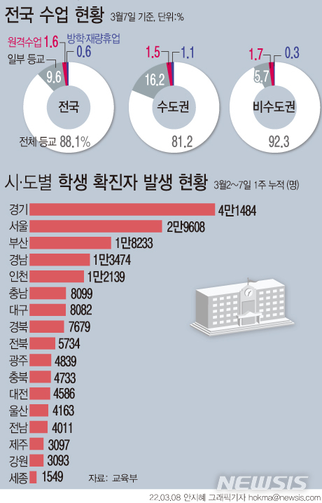 [그래픽] 전국 유·초·중·고 등교 현황 및 시도별 학생 확진 현황