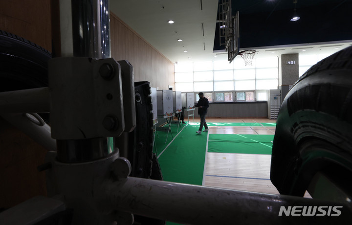 [서울=뉴시스] 고범준 기자 = 제20대 대통령선거일인 9일 오후 서울 성북구 성북종합레포츠타운 어린이체육관에 마련된 석관동 제5투표소에서 유권자들이 기표소로 향하고 있다. 2022.03.09. [email protected]