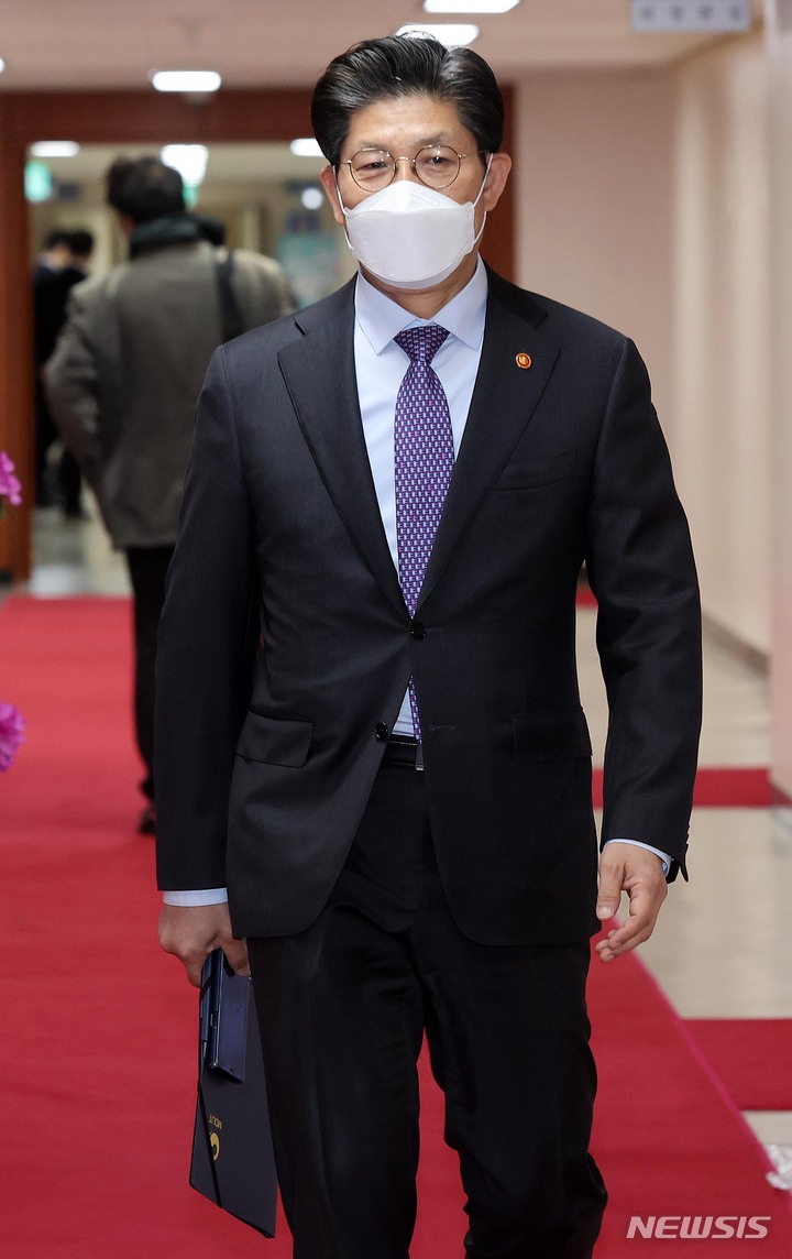 [서울=뉴시스] 김명원 기자 = 노형욱 국토교통부 장관이 15일 오전 서울 종로구 정부서울청사에서 열린 국무회의에 참석하고 있다. (공동취재사진) 2022.03.15. [email protected]