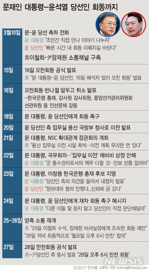 [그래픽] 문재인 대통령-윤석열 당선인 회동까지