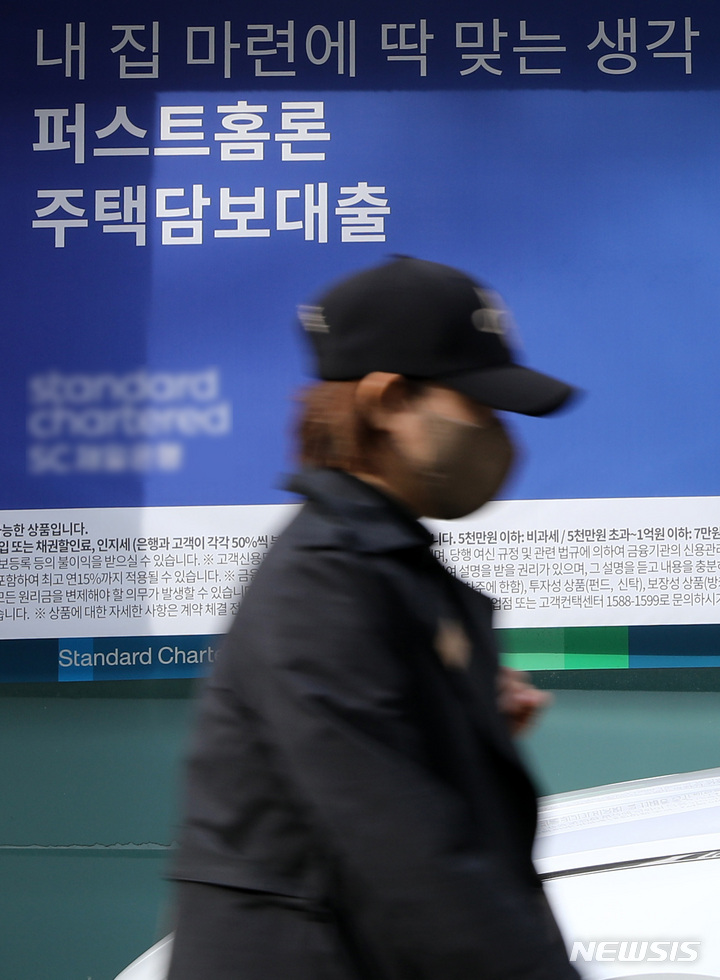 [서울=뉴시스] 이영환 기자 = 29일 은행권에 따르면 우리은행의 고정금리형(혼합형) 주택담보대출 금리가 6%를 돌파하고 다른 시중은행의 주택담보대출 고정형(혼합형) 금리도 상승하면서 6%선에 근접하고 있다. 주택담보대출 금리 상승은 최근 국고채 금리가 급격히 오른 영향으로 풀이된다. 사진은 30일 서울 시내의 한 은행에 게시된 주택담보대출 안내 문구. 2022.03.30. [email protected]