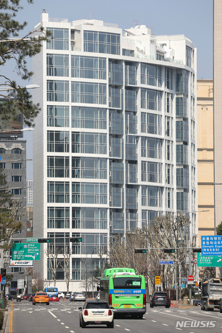 [서울=뉴시스] 권창회 기자 = 국토교통부 실거래가 공개시스템에 따르면 서울 강남구 PH129(더펜트하우스 청담) 전용면적 273.96㎡는 지난 3월21일 보증금 4억원·월세 4000만원에 임대차 계약을 체결했다. 이는 지난해 7월 서울 성동구 아크로포레스트 전용 264.546㎡가 기록했던 보증금 20억원·2700만원의 기록보다 1300만원 높은 역대 최고가다. 사진은 4일 오후 서울 강남구 PH129 모습. 2022.04.04. [email protected]