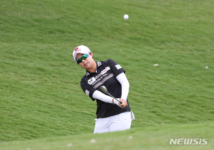 [서울=뉴시스] 백동현 기자 = 15일(현지시간) 하와이 오하우섬 에바비치에 위치한 호아칼레이CC에서 열린 'LOTTE CHAMPIONSHIP' 3R 8번홀에서 김효주가 칩샷하고 있다. (사진=대홍기획 제공) 2022.04.16. [email protected]