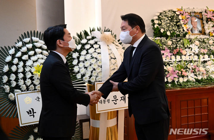 안철수 인수위원장 부친 빈소 찾은 최태원 회장
