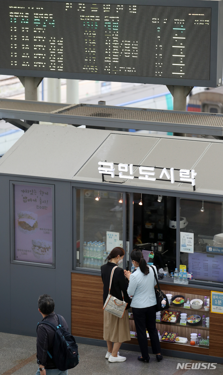 [서울=뉴시스] 조성우 기자 = 코로나19 감염병 등급이 2단계로 낮아짐에 따라 철도와 시외·고속·전세버스 내 취식이 가능해진 25일 오후 서울 중구 서울역 승강장에서 시민들이 이동하고 있다. 2022.04.25. [email protected]