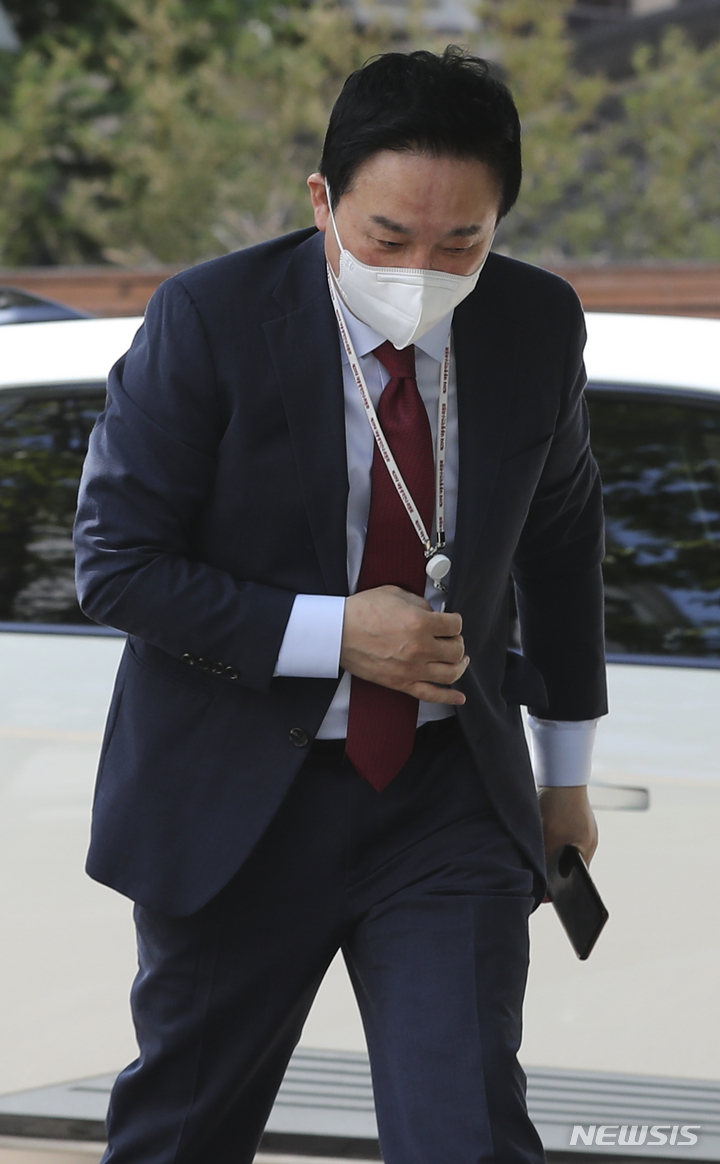[서울=뉴시스] 최진석 기자 = 원희룡 국토교통부 장관 후보자가 인사청문회를 하루 앞둔 1일 서울 종로구 통의동 인수위원회로 출근하고 있다. 2022.05.01. [email protected]
