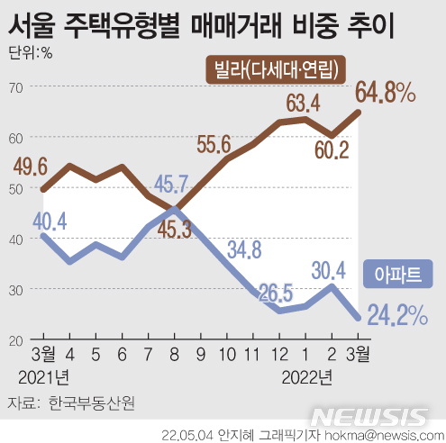 [그래픽] 올해 3월 서울 빌라 매입비중 64.8%…역대 최고치
