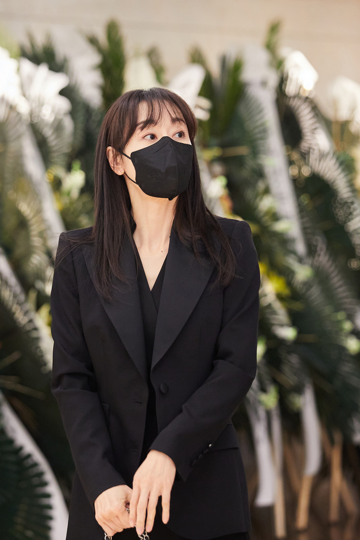 [서울=뉴시스] 배우 김윤진이 8일 서울 강남구 삼성서울병원 장례식장에 마련된 고(故) 강수연 빈소를 조문하고 있다. (사진=故 강수연 배우 장례위원회 제공) 2022.05.09. [email protected] *재판매 및 DB 금지
