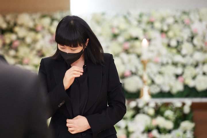 [서울=뉴시스] 배우 김혜수가 8일 서울 강남구 삼성서울병원 장례식장에 마련된 고(故) 강수연 빈소를 조문한 뒤 나서고 있다. (사진=故 강수연 배우 장례위원회 제공) 2022.05.09. [email protected] *재판매 및 DB 금지