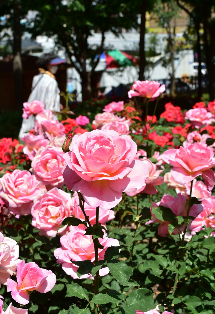 [대구=뉴시스] 이무열 기자 = 9일 오전 대구 서구 그린웨이 장미원을 찾은 시민이 활짝 핀 장미 사이를 걸으며 즐거운 시간을 보내고 있다. 2022.05.09. [email protected]