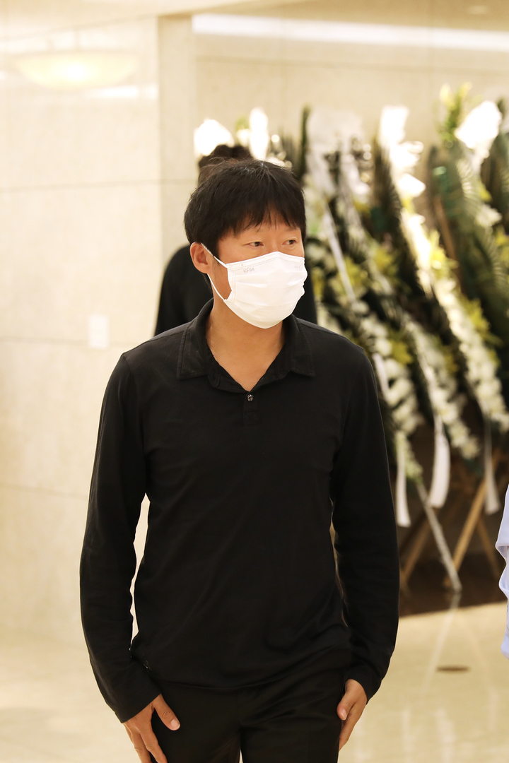 [서울=뉴시스] 정병혁 기자 = 배우 유해진이 8일 서울 강남구 삼성서울병원 장례식장에 마련된 고(故) 강수연 빈소를 조문한 뒤 나서고 있다. (사진=故 강수연 배우 장례위원회 제공) 2022.05.09. [email protected] *재판매 및 DB 금지