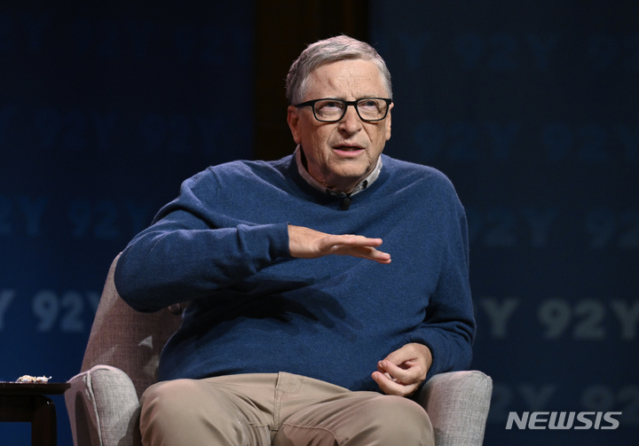 [뉴욕=AP/뉴시스] 마이크로소프트(MS) 공동창업자인 빌 게이츠가 코로나19에 걸렸다고 10일(현지시간) 자신의 트위터를 통해 밝혔다. 그는 "증상은 가볍고 전문가 조언에 따라 격리할 것"이라고도 했다. 사진은 지난 3일 게이츠가 뉴욕에서 자신이 쓴 책에 관해 얘기하는 모습. 2022.05.11.