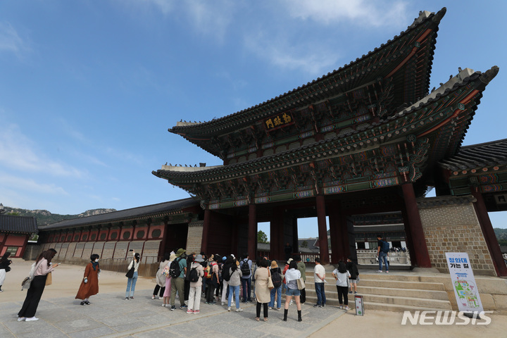 [서울=뉴시스] 배훈식 기자 = 2022 봄 궁중문화축전 프로그램이 시작된 14일 오전 서울 종로구 경복궁을 찾은 시민들이 여유로운 주말을 보내고 있다. 2022.05.14. [email protected]