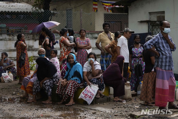 [콜롬보=AP/뉴시스] 19일(현지시간) 스리랑카 콜롬보에서 조리용 석유를 사려는 시민들이 주유소 앞에 모여 기다리고 있다. 스리랑카는 중국이 주도하는 '일대일로' 사업에 참여해 많은 차관을 빌려 항만과 사회간접자본(SOC)을 개발했으나 차관을 갚기 힘들게 돼 자국의 항구 운영권을 중국 국영기업에 99년 동안 넘겨줬다. 그러나 끝내 차관을 갚지 못하고 디폴트(채무불이행) 선언을 했다. 2022.05.19.