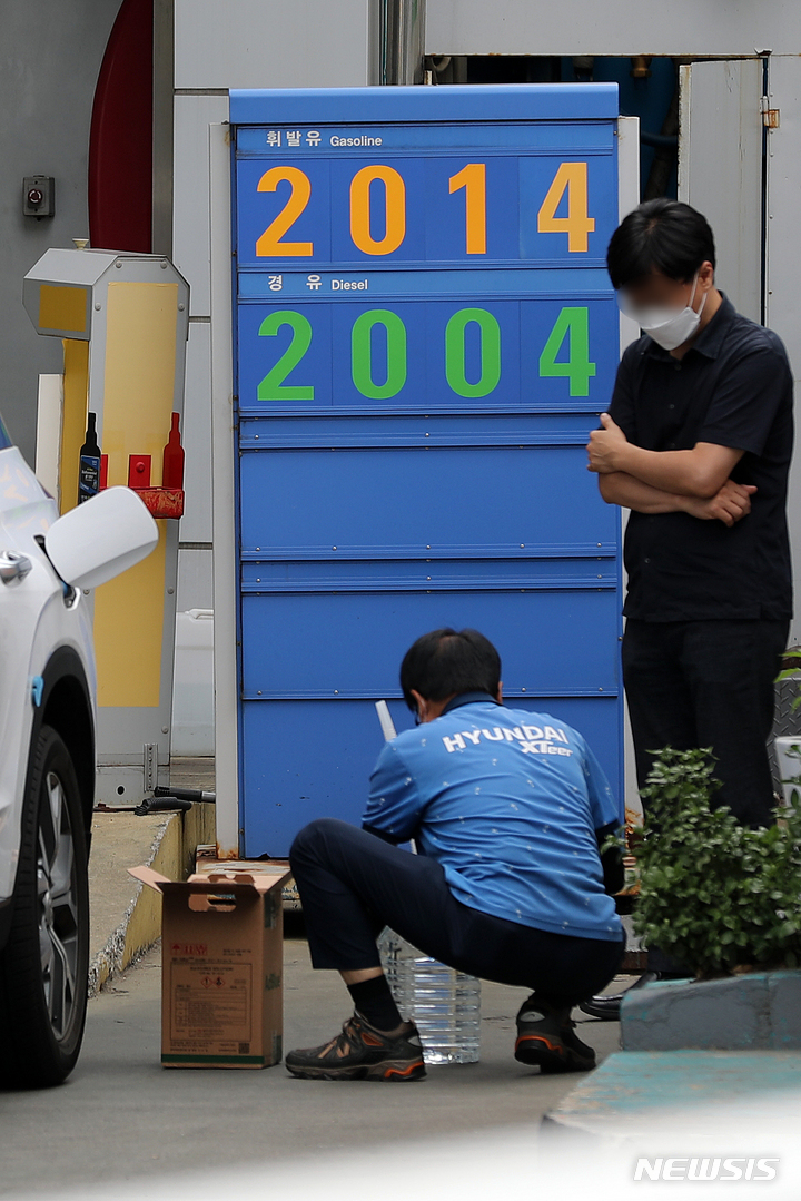 [서울=뉴시스] 백동현 기자 = 31일 오전 서울 시내 한 주유소에 유가정보가 표시돼있다. 이날 한국석유공사 유가정보서비스 오피넷에 따르면 오전 9시 기준 휘발유 가격은 리터당 2011.79원, 경유 가격은 리터당 2007.61원을 기록했다. 2022.05.31. [email protected]