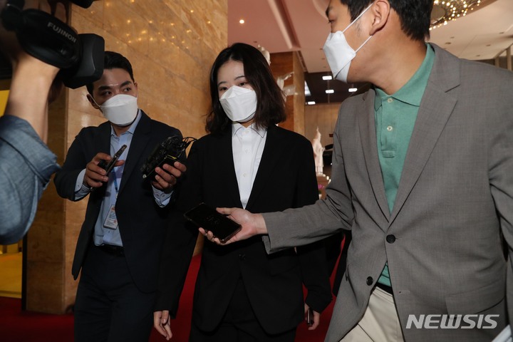 [서울=뉴시스] 김선웅 기자 = 박지현 더불어민주당 공동비상대책위원장이 2일 오전 서울 여의도 국회에서 열린 비공개 비상대책위원회의에 참석하기 위해 대표실로 향하고 있다. (공동취재사진) 2022.06.02. [email protected]