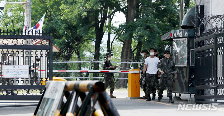 [서울=뉴시스] 추상철 기자 = 코로나19로 중단됐던 예비군 훈련이 재개된 2일 오후 서울 서초구 과학화 서초과학화예비군훈련장에서 예비군이 훈련을 마치고 퇴소하고 있다. 2022.06.02. [email protected]