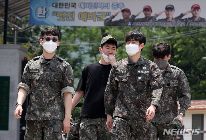 [서울=뉴시스] 추상철 기자 = 코로나19로 중단됐던 예비군 훈련이 재개된 2일 오후 서울 서초구 과학화 서초과학화예비군훈련장에서 예비군이 훈련을 마치고 퇴소하고 있다. 2022.06.02. [email protected]