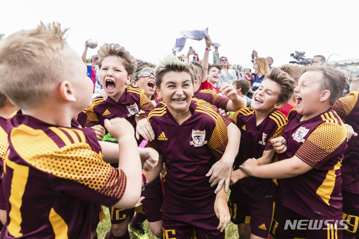 [뉴저지=AP/뉴시스] 16일(현지시간) 미 뉴저지주 뉴저지에서 마사페콰 유소년 축구팀 어린이들이 뉴욕·뉴저지가 2026 FIFA 월드컵 개최 도시로 선정됐다는 발표에 환호하고 있다. 국제축구연맹(FIFA)은 이날 공식 홈페이지를 통해 2026 월드컵 개최 도시(캐나다 2개, 미국 11개, 멕시코 3개)를 확정, 발표했다. 2022.06.17.