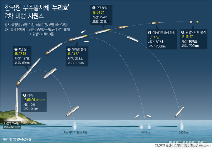 [그래픽] 누리호 2차 비행시퀀스…"고도 700km에 도달하면 성공으로 판단"