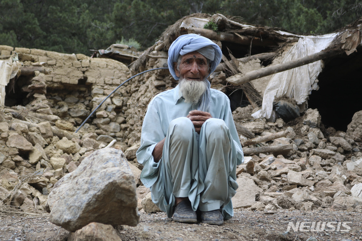 [스페라=AP/뉴시스] 22일(현지시간) 아프가니스탄 호스트주 스페라 마을에서 한 노인이 지진으로 파괴된 집 주변에 앉아 있다. 아프간 남동부 팍티카주 일대에서 규모 5.9의 지진이 발생해 지금까지 1000명이 넘게 숨지고 1500명 이상이 다쳤으며 가옥 2천여 채가 파괴됐다고 탈레반이 밝혔다. 2022.06.23.