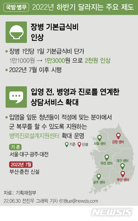 [그래픽] [하반기 달라지는 것] 軍장병 하루 급식비, '1만1000원→1만3000원' 인상