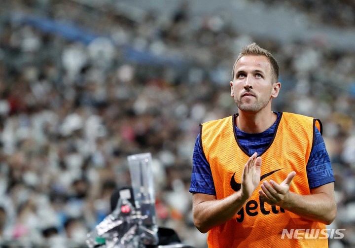 [서울=뉴시스] 정병혁 기자 = 13일 서울 마포구 서울월드컵경기장에서 열린 쿠팡플레이시리즈 1차전 팀 K리그와 토트넘 홋스퍼의 경기, 토트넘 해리 케인이 몸을 풀고 있다. 2022.07.13. [email protected]