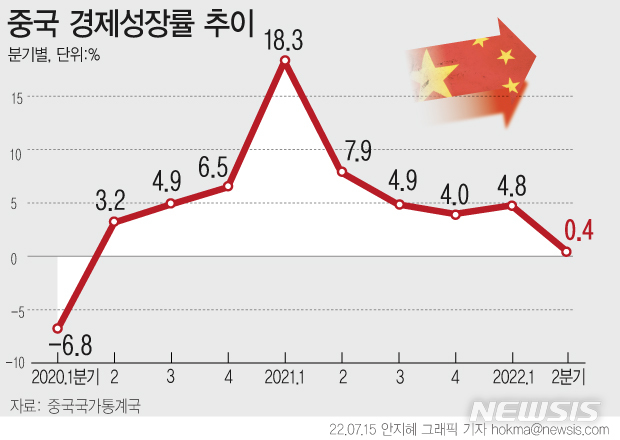 [그래픽] 중국, 2분기 경제 성장률 0.4%