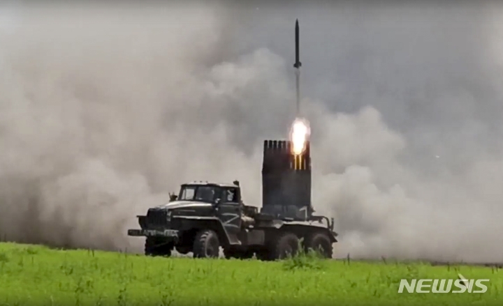 [모스크바=AP/뉴시스] 러시아 국방부가 16일(현지시간) 제공한 사진에 러시아군의 그라드 다연장 로켓포가 공개되지 않은 장소에서 우크라이나군을 향해 발사되고 있다. 러시아는 우크라이나에 대한 전방위 공격을 강화해 우크라이나 전역 도시와 마을에 미사일과 포격을 퍼부었다. 우크라이나 정부는 러시아군의 공격으로 최소 17명의 민간인이 살해됐다고 밝혔다. 2022.07.17.