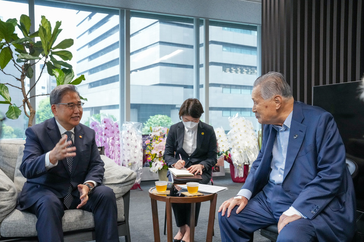 [서울=뉴시스] 조수정 기자 = 방일 중인 박진 외교부 장관이 19일 모리 요시로 전 일본총리를 예방하고 있다. (사진=외교부 제공) 2022.07.19. [email protected]