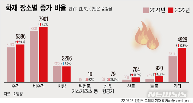 [그래픽] 상반기 산불 작년보다 91.3%↑, 들불 88.9%↑