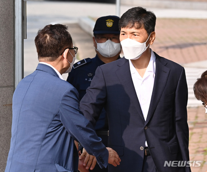 [여주=뉴시스] 김종택기자 = 여성 수행비서를 성폭행한 혐의로 실형을 선고받고 수감 생활을 해 온 안희정 전 충남지사가 4일 오전 경기도 여주교도소에서 3년 6개월의 형기를 마치고 만기출소하고 있다. 안 전 지사는 지난 2018년 4월 피감독자 간음 및 강제추행, 성폭력범죄처벌법상 업무상 위력에 의한 추행 혐의로 기소됐고 2019년 9월 대법원에서 실형을 확정받아 복역해왔다. 2022.08.04. [email protected]