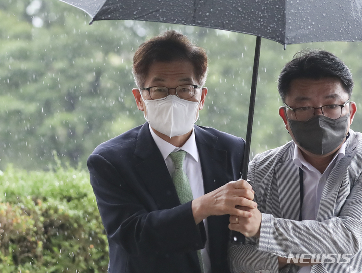 [과천=뉴시스] 김근수 기자 = 구본민 법무법인 강남 변호사가 9일 오전 경기도 과천 법무부에서 열린 사면심사위원회에 참석하고 있다. 2022.08.09. [email protected]