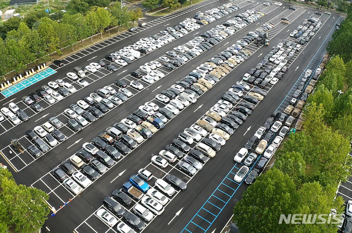 [과천=뉴시스] 백동현 기자 = 중부지방 집중호우로 발생한 차량 피해 추정손해액이 1400억원을 돌파한 가운데 14일 오전 경기 과천시 서울대공원 주차장에 수도권 침수차량이 모여있다. 2022.08.14. [email protected]