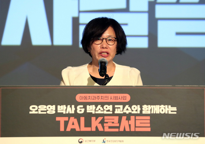 [서울=뉴시스] 이영환 기자 = 변효순 보건복지부 구강정책과장이 17일 오후 서울 중구 명동 포스트타워 대회의실에서 열린 오은영 박사 & 박소연 교수와 함께하는 토크콘서트에 참석해 인사말을 하고 있다. 2022.08.17. [email protected]