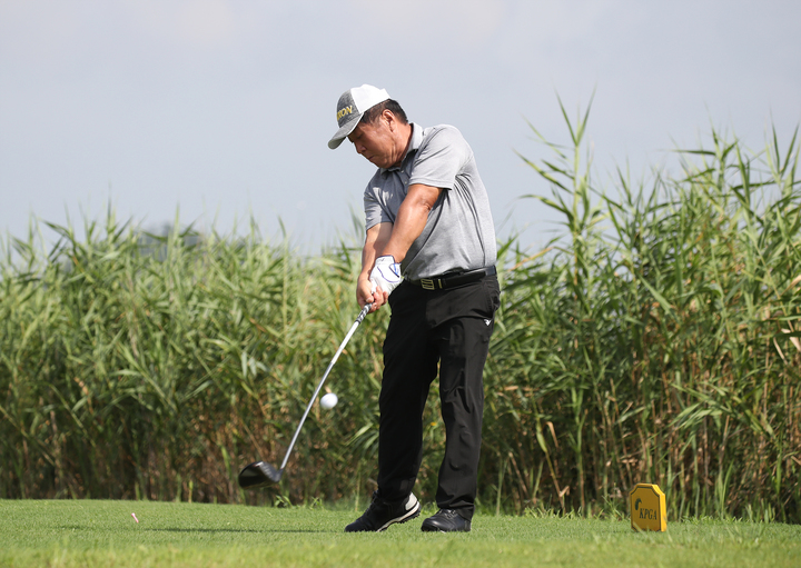 [서울=뉴시스] 조수정 기자 = 18일 전남 영암군 사우스링스(카일필립코스)에서 열린 제23회 KPGA 그랜드시니어 선수권대회 1라운드,권오철이 12번홀 드라이버 티샷하고 있다. (사진=KPGA 제공) 2022.08.18. [email protected] *재판매 및 DB 금지